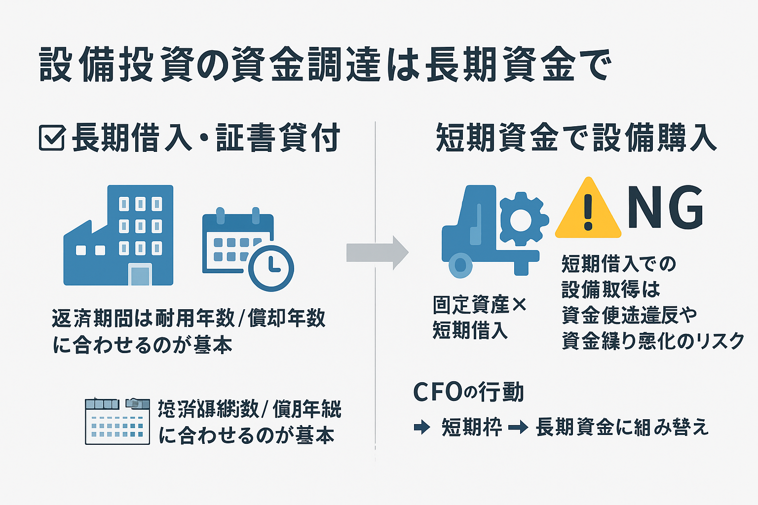 - 耐用年数・法定耐用年数との整合性:特に機械設備・建物などは法定耐用年数や償却期間が設定されており、これを基準に返済期間を設計することが多いです。